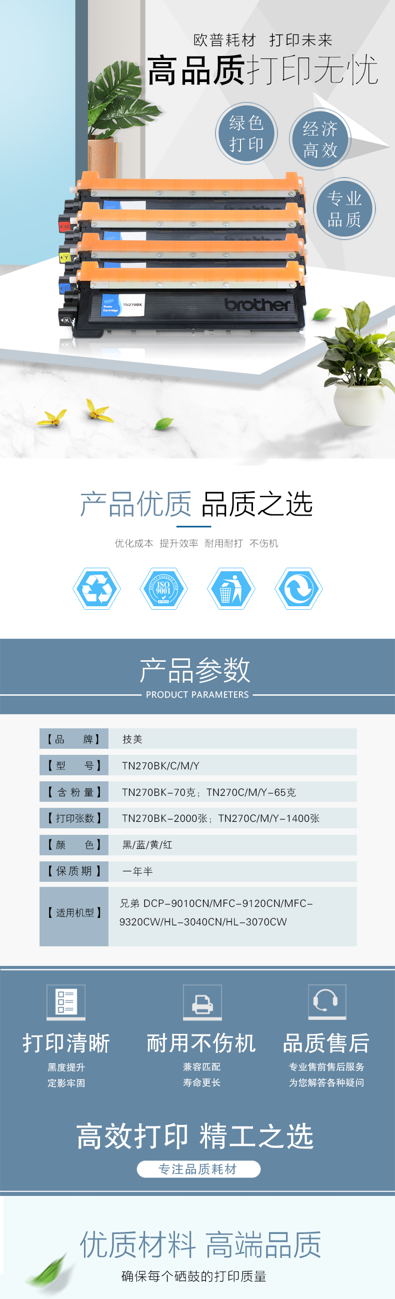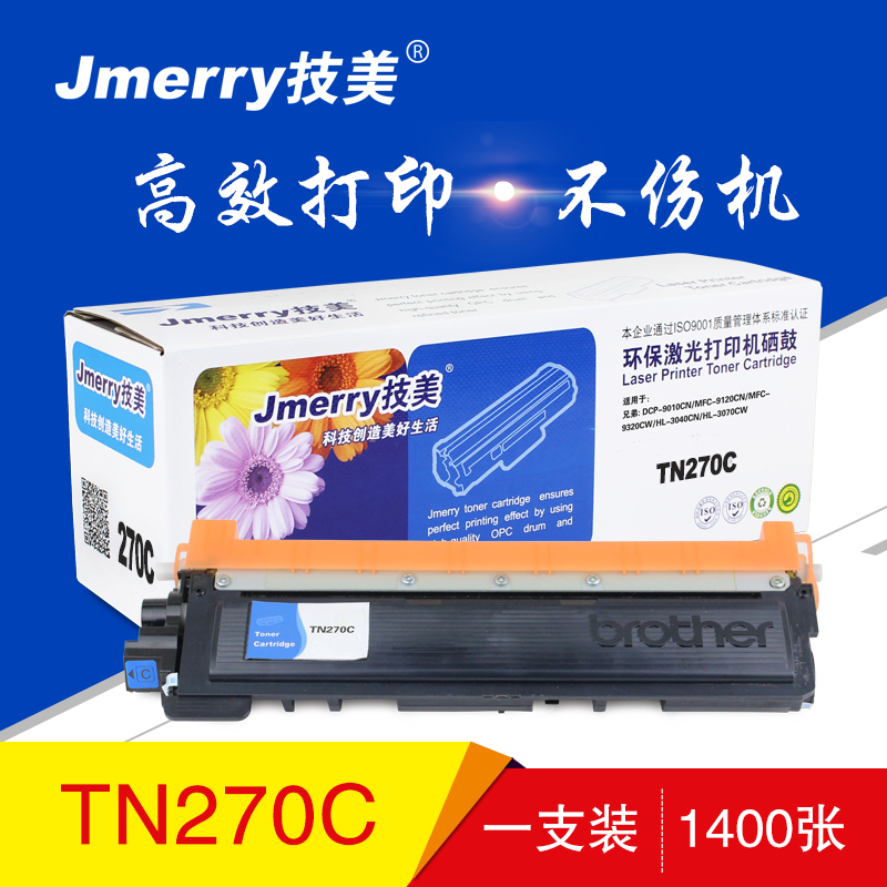 技美(Jmerry)彩色粉仓TN270BK/C/M/Y适用兄弟DCP-9010CN/MFC-9120CN等 蓝色 自营