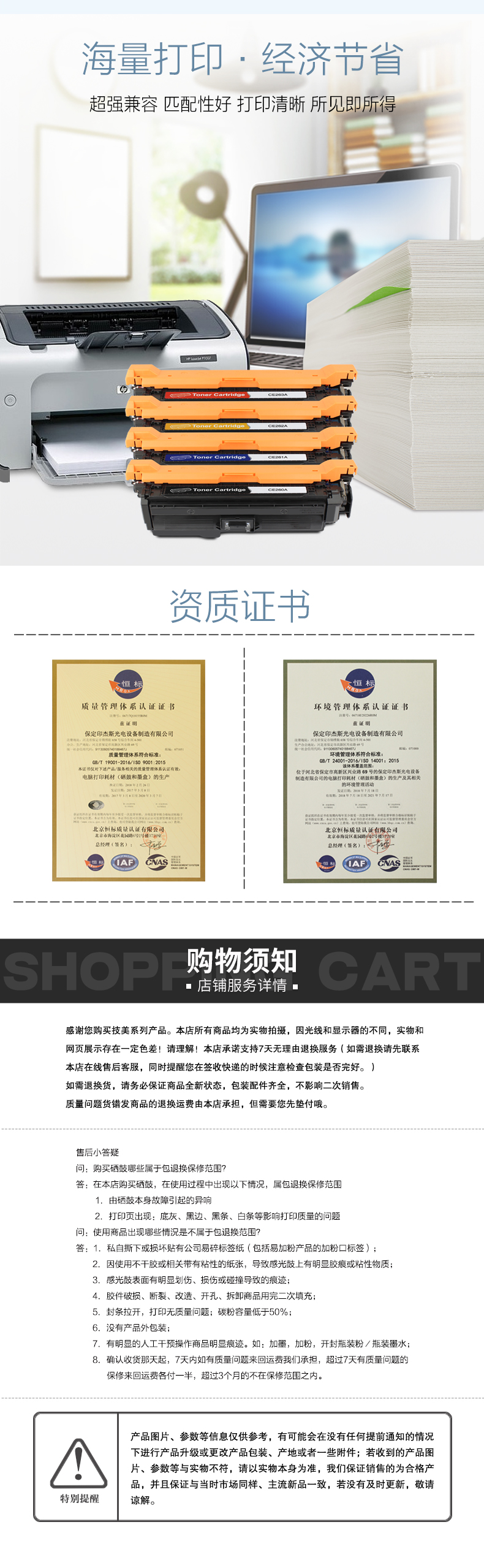 技美(Jmerry)打印机耗材彩色硒鼓CE260-263A适用HP CP4025n/4525等 黄色 自营