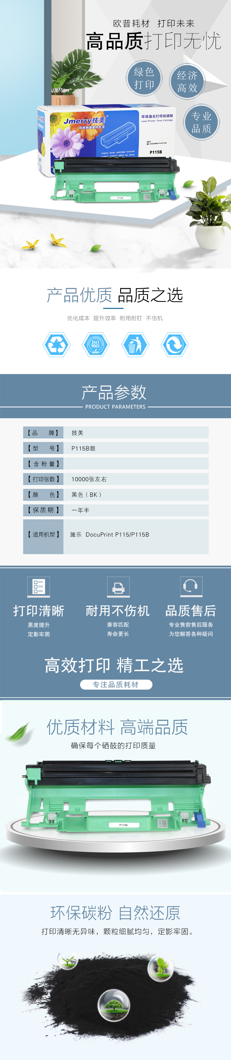 技美(Jmerry)P115B硒鼓适用施乐 DocuPrint P115/P115B等 黑色 自营