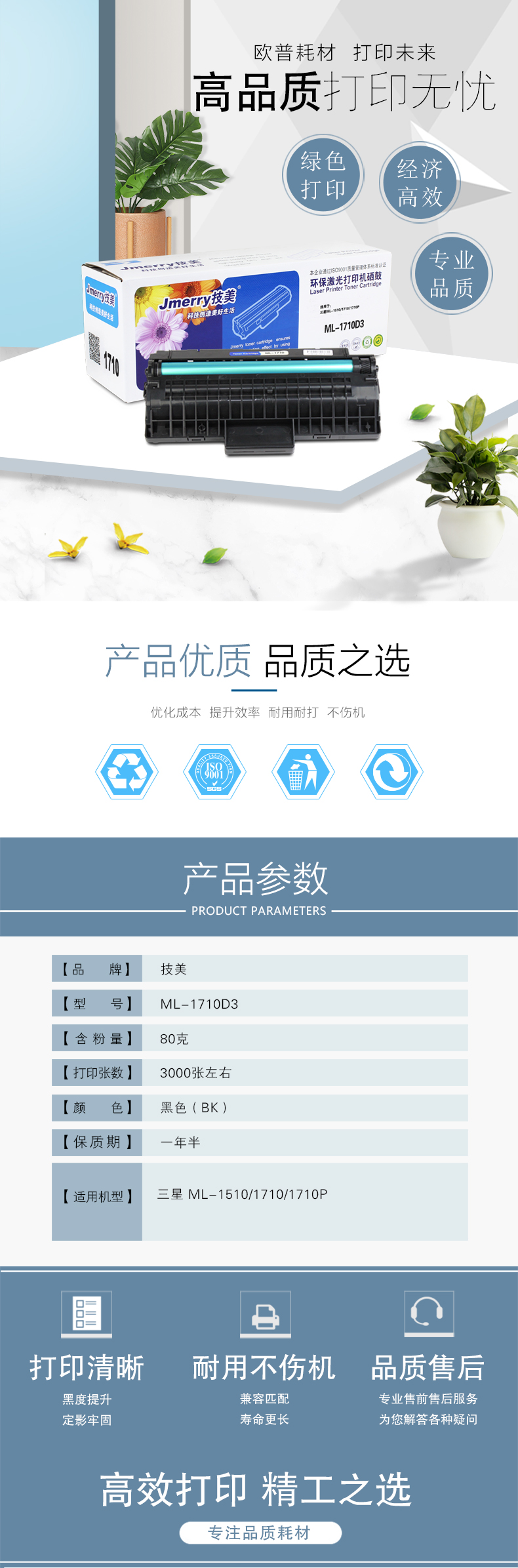 技美(Jmerry)M1710打印机硒鼓三星ML-1510/1710/1710P等 黑色 自营