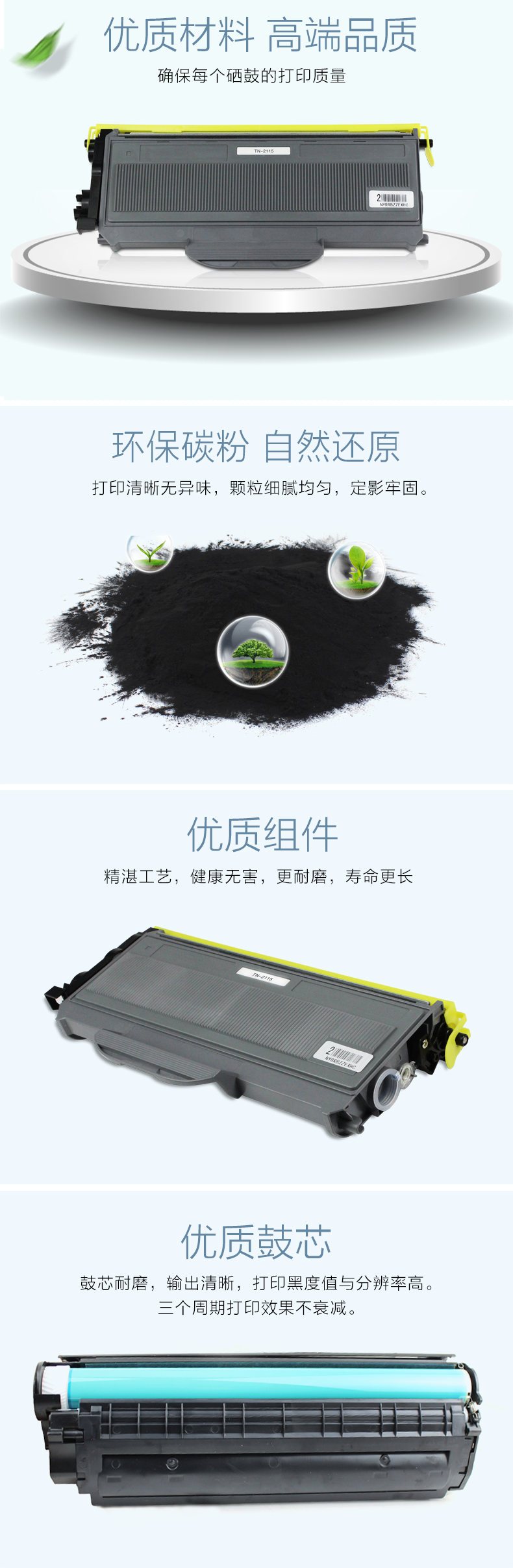 技美(Jmerry)TN-2115粉仓适用兄弟 HL-2140/2150/2170/7450/7340等 黑色 自营
