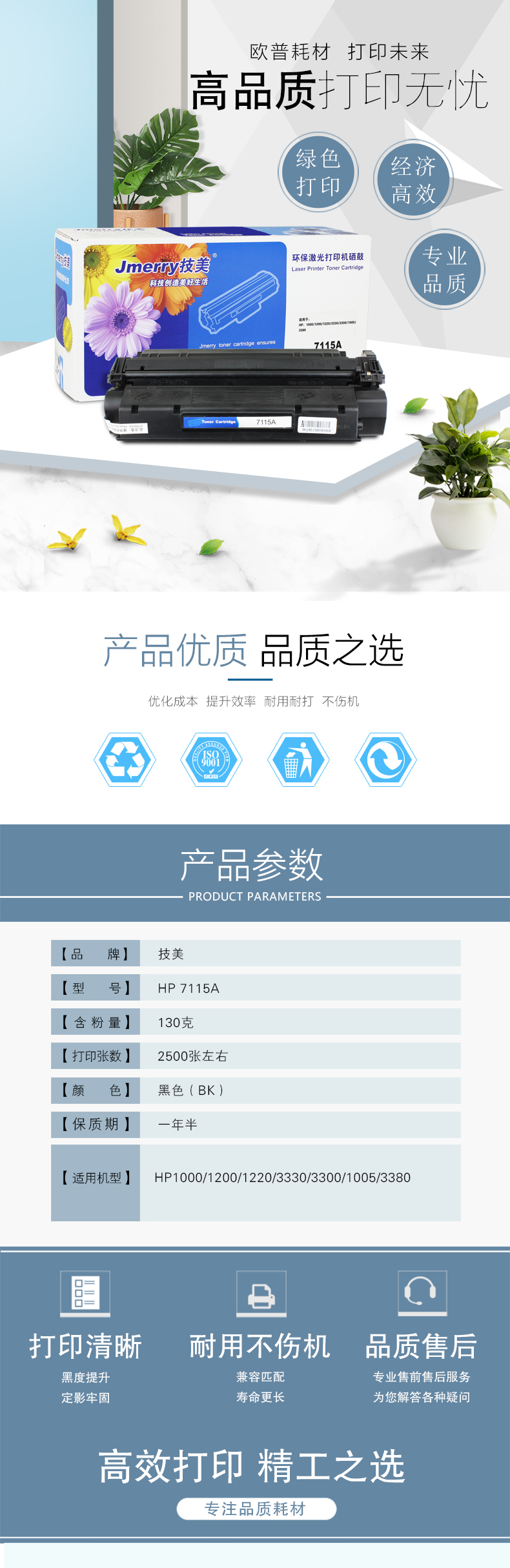 技美(Jmerry)打印机硒鼓黑色HP 7115A适用HP1000/1200/1220/3330等 黑色 自营