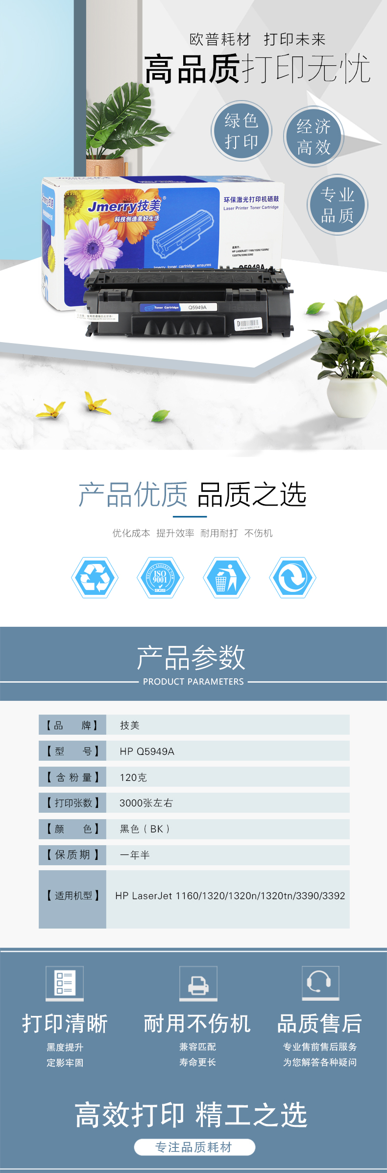 技美(Jmerry)打印机硒鼓HP5949A适用HP1160/1320/3390/3392等 黑色 自营
