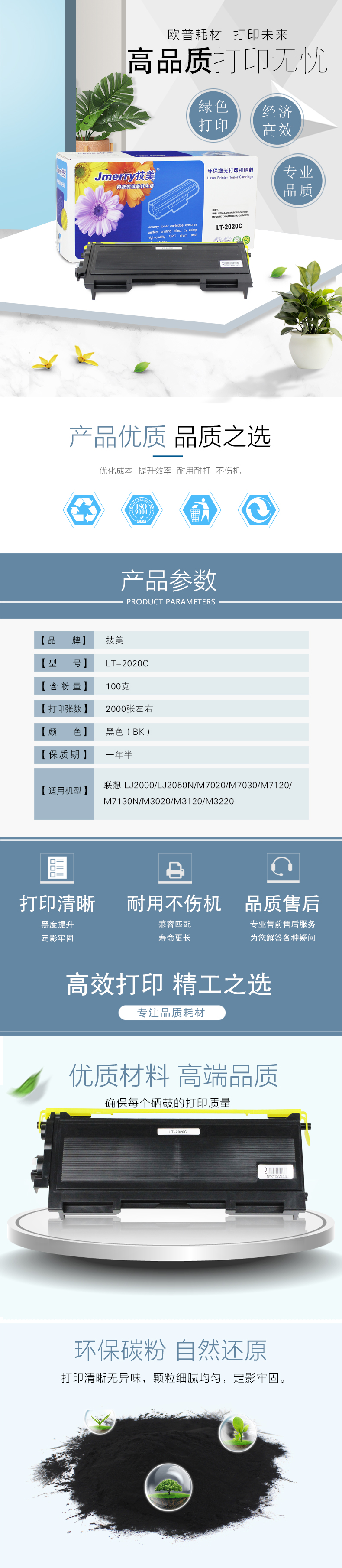技美(Jmerry)打印机硒鼓LT-2020C适用联想 LJ2000/LJ2050N/M7020等 黑色 黑色 自营